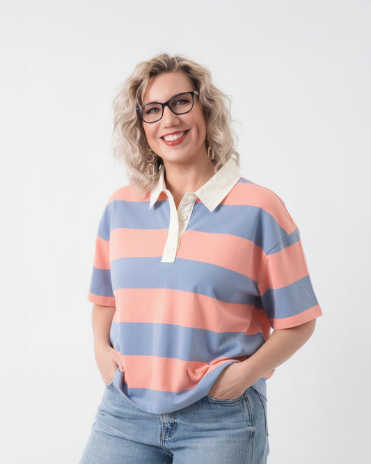 Rugby Striped Half Sleeve Polo Shirt