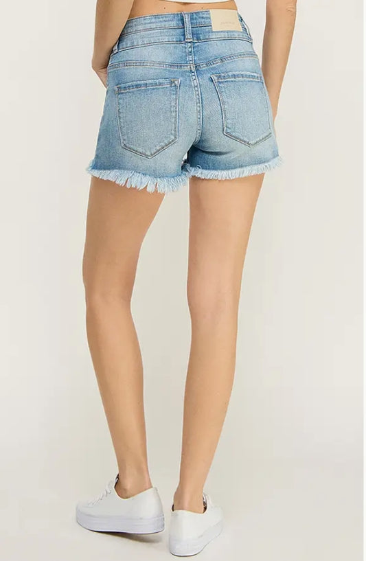"Love on Top" High Rise Uneven Raw Hem Boyfriend Shorts