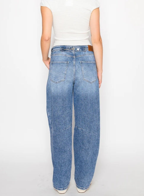 Artemis - Adjustable Strap Waistband Barrel Jeans