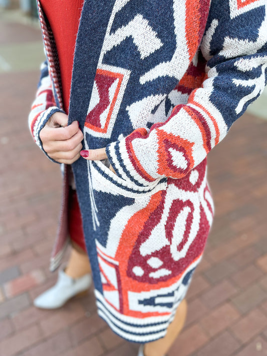 Rust Aztec Print Coatigan