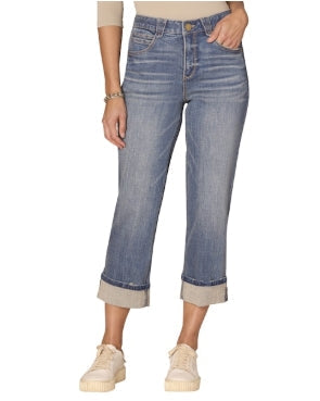 "Ab"solution" High Rise Embroidered Indigo Itty Bitty Boot Jean
