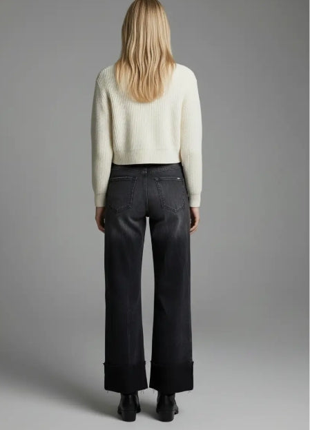 High Rise Dark Seamless Waistband Wide Leg Jean