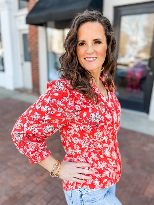 Poppy Red Floral Woven Blouse