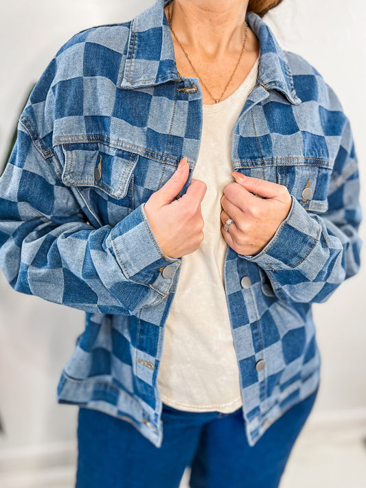 Checkered Denim Jacket