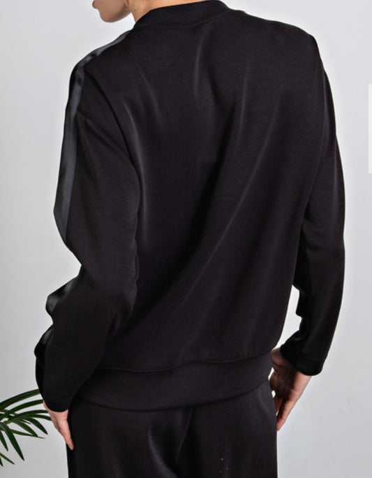 Black Modal Crewneck w/ Satin Stripe
