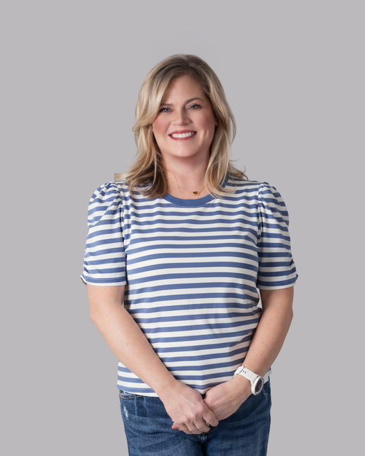 Pop of Color Blanket Stitch Puff Sleeve Top