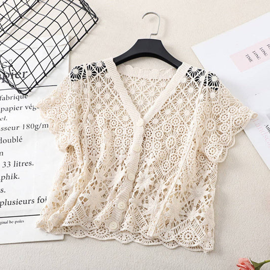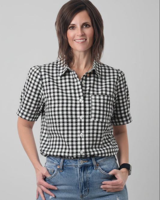 Navy w/ White Scalloped Edges Short Sleeve Sweater