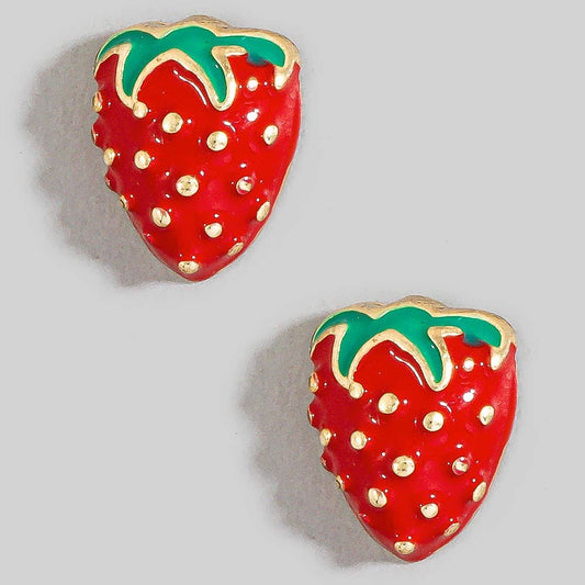 Enamel Strawberry Fruit Stud Earrings