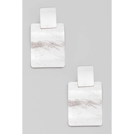 Brushed Metallic Rectangle Dangle Earrings