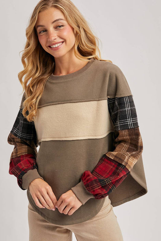 Color Block Plaid Flannel Patch Sweatshirt