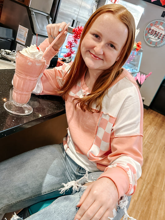 Pink & White Checkered Pullover