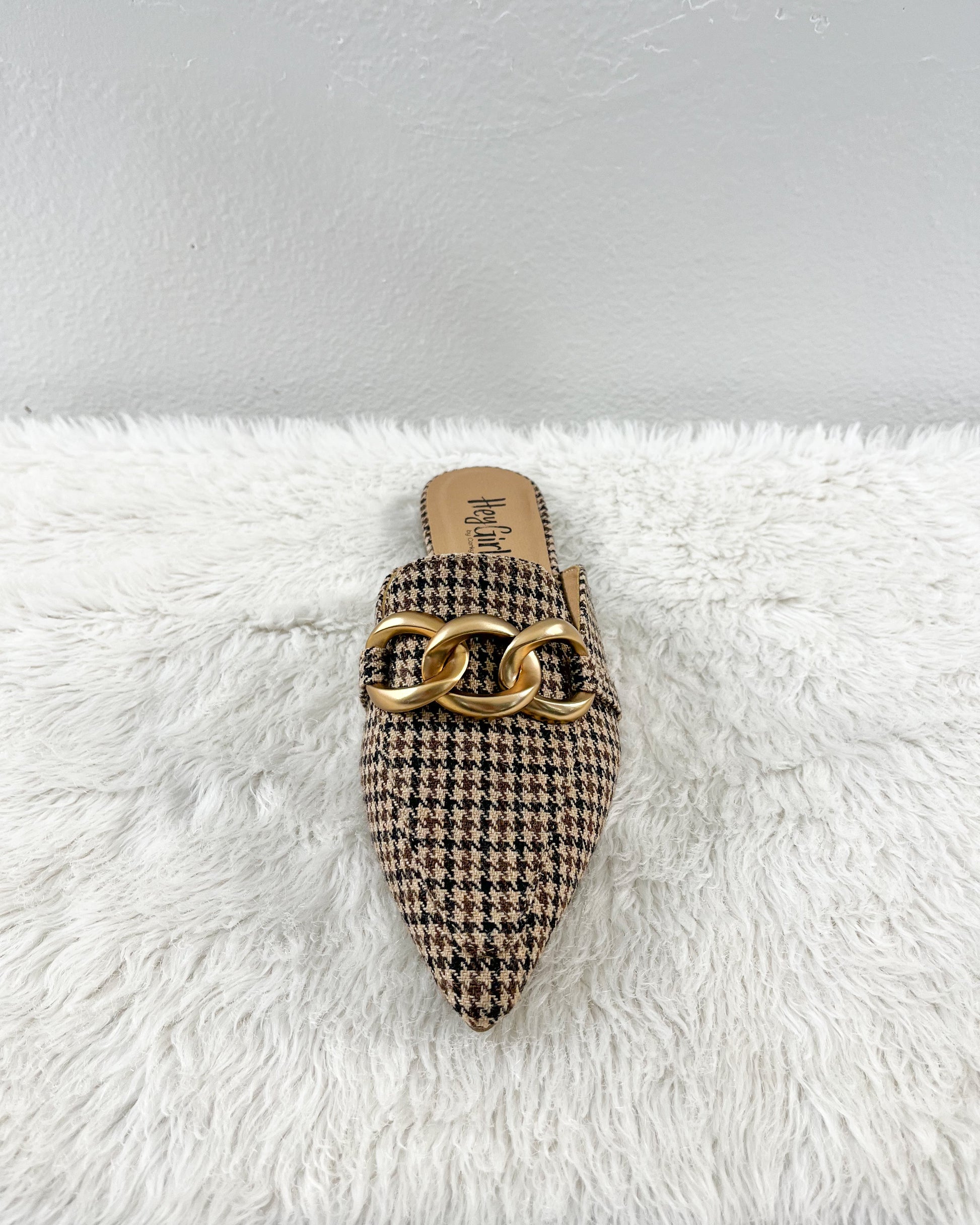 Step out in style with these Black & Tan Houndstooth Slip-On Shoes. Their classic pattern pairs effortlessly with cropped denim or dress pants, while the easy slip-on design keeps you comfy all day. Perfect for brunch dates with the girls or casual outings, these shoes add a playful touch to any outfit. Cozy up with a cable knit sweater and let your feet do the talking!