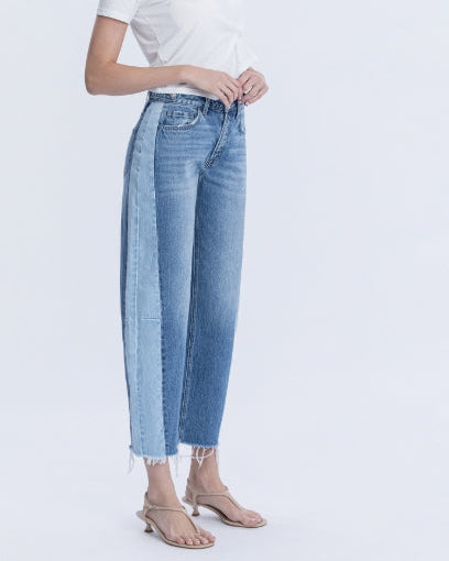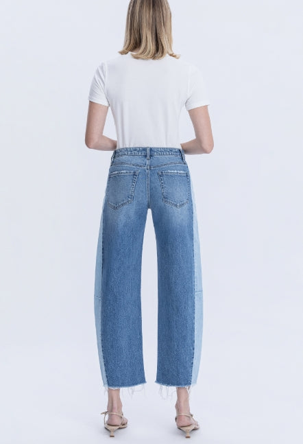 "Blue Memoir" 2 Tone High Rise Barrel Jean