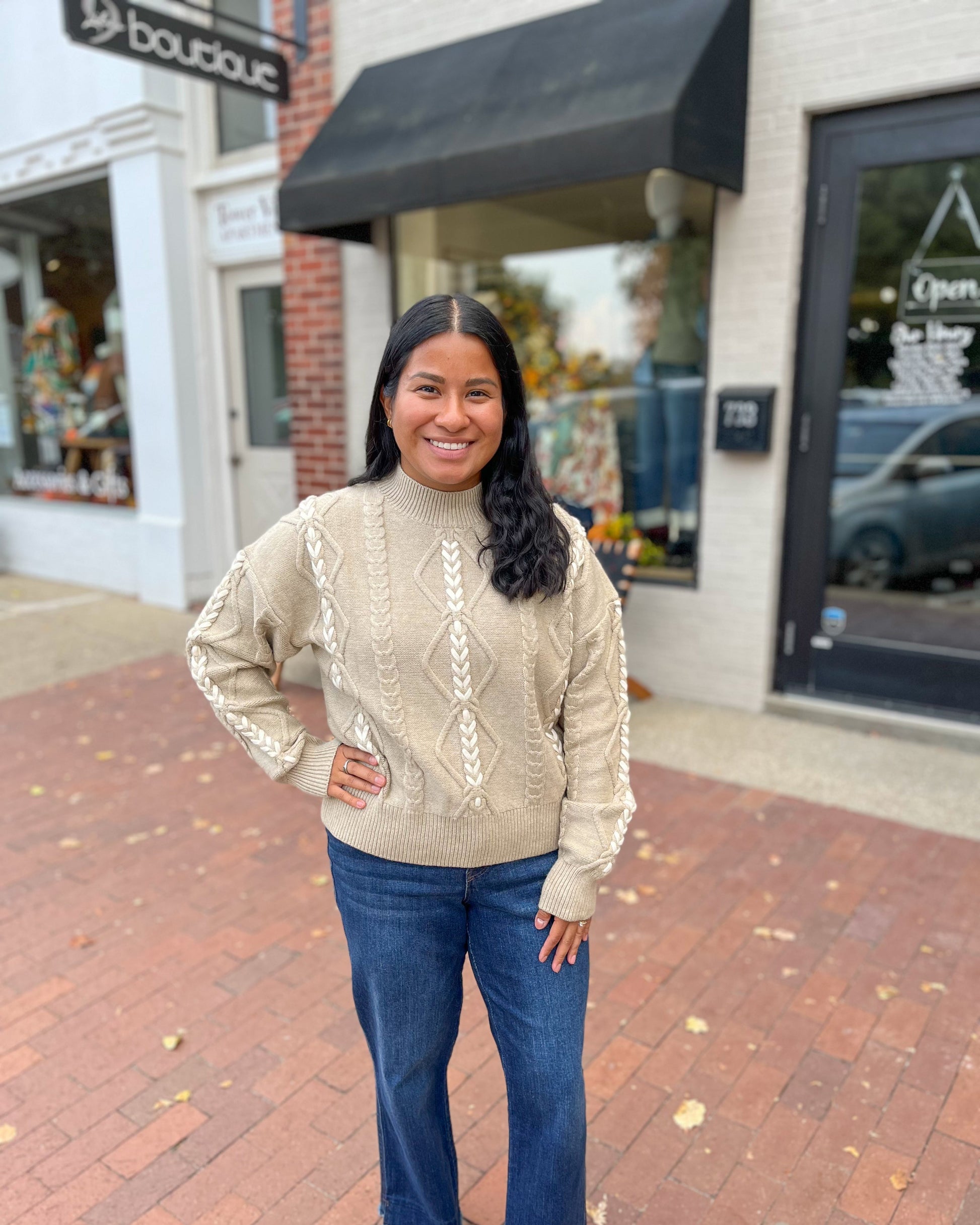 Braided Detail Mock Neck Sweater