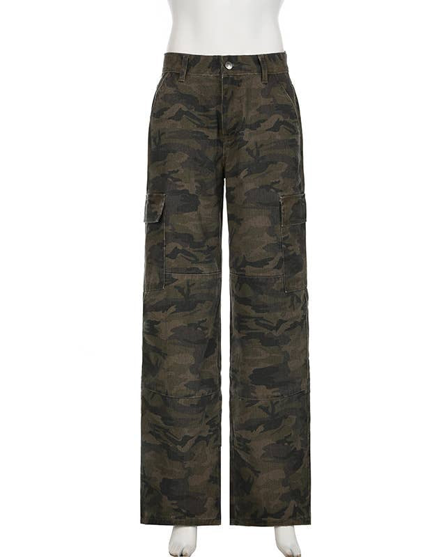 Add a playful edge to your wardrobe with these Camouflage Jeans straight denim pants. Featuring cargo pockets for a fun, functional twist, they pair perfectly with a satin blouse, your favorite band tee, or a cozy cable-knit sweater. Embrace casual cool with a touch of bold style!