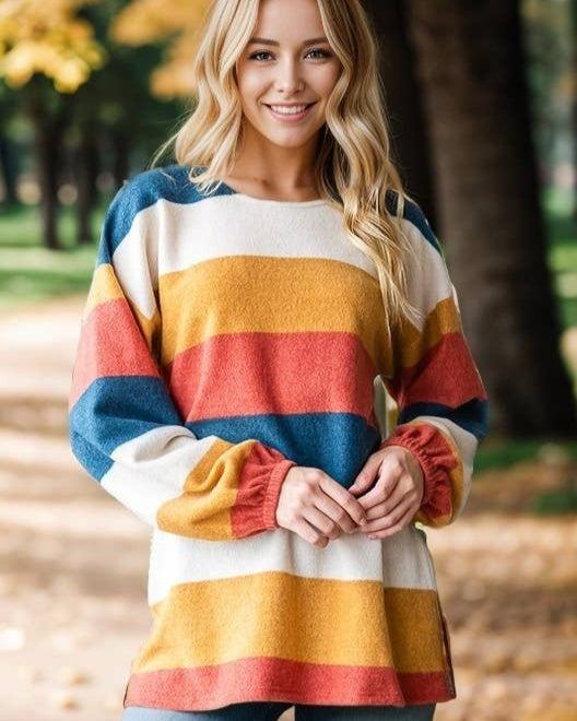 Autumn Multi Colored Stripe Pullover