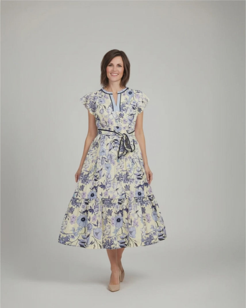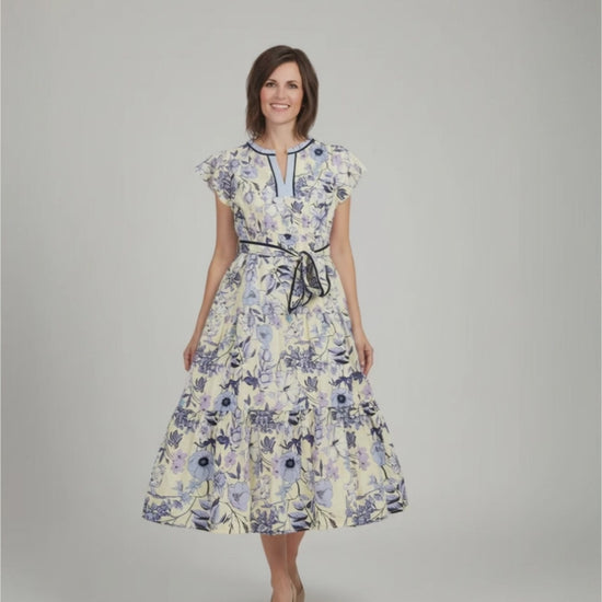 Blue & Periwinkle Bubble Sleeve Tiered Dress