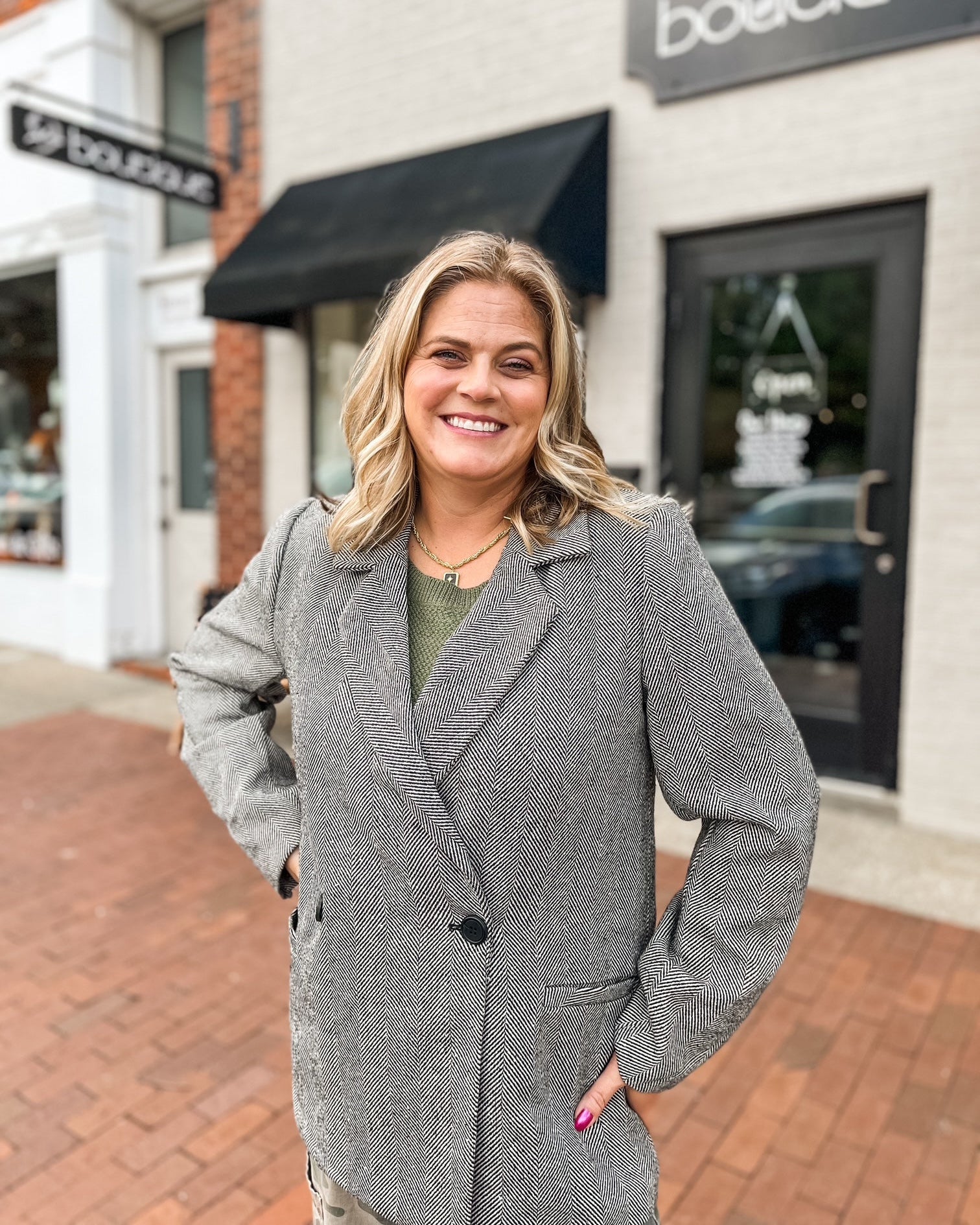 Step out in style with the Herringbone Black & White Blazer, where classic meets cool in a fun twist. Its bold pattern adds a dash of flair to any outfit, while the crisp black and white shades keep it effortlessly chic. Whether you're owning the boardroom or brunch, this blazer brings a playful edge that turns heads and sparks compliments. Dress it up or down—it’s your new go-to for making every day a little more fabulous.
