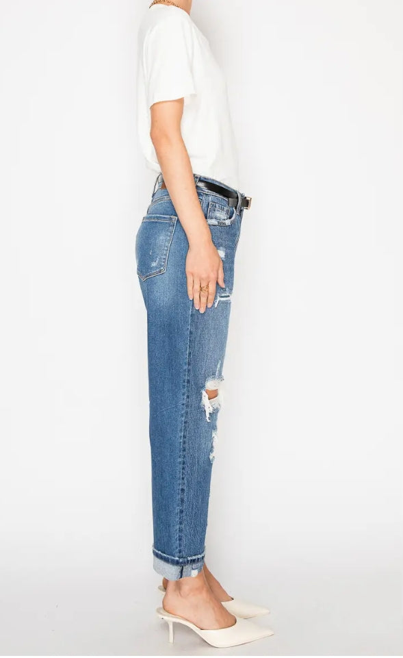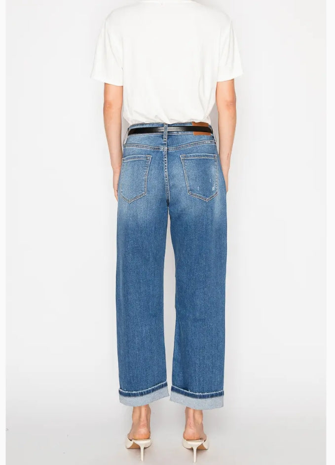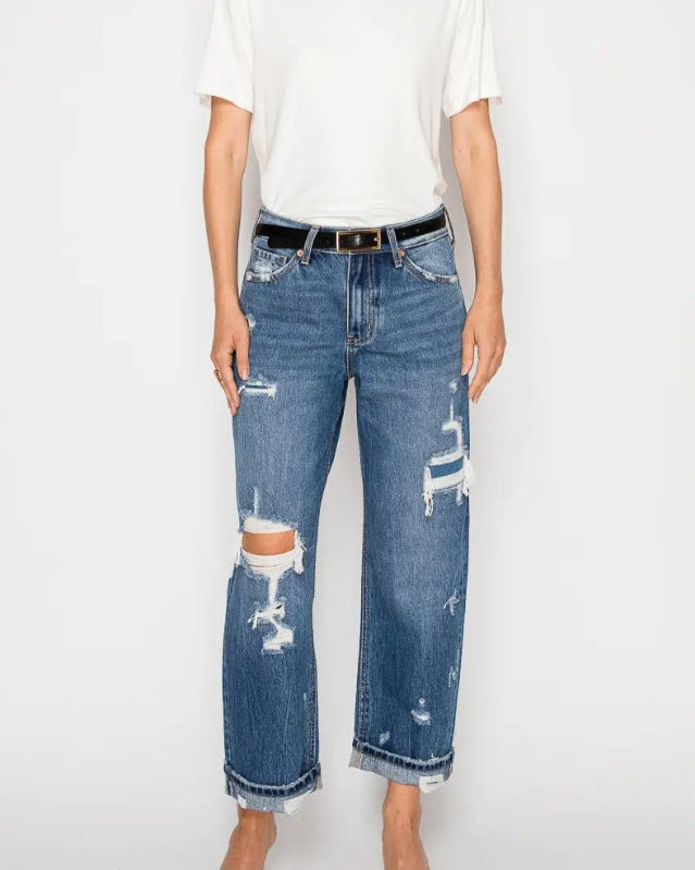 Step into effortless style with the "Hybrid" High Rise Straight Leg jeans. Featuring just the right amount of distressing for that cool, lived-in vibe, they hug your waist and flow straight down for a flattering fit. Perfect for mixing comfort with a little edge, these jeans will have you feeling confident and ready for anything.
