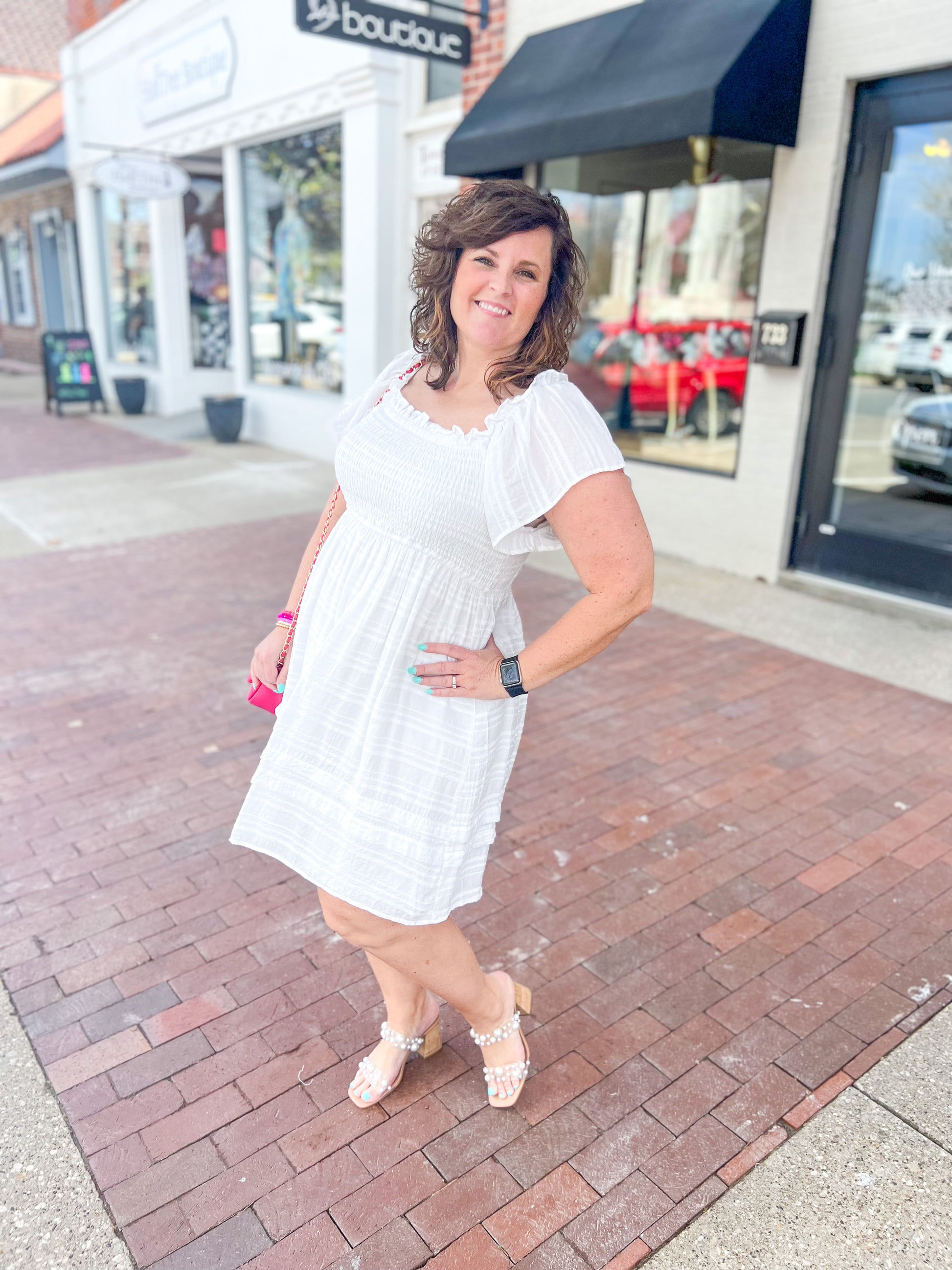 Ivory Stitched Line Smocked Dress