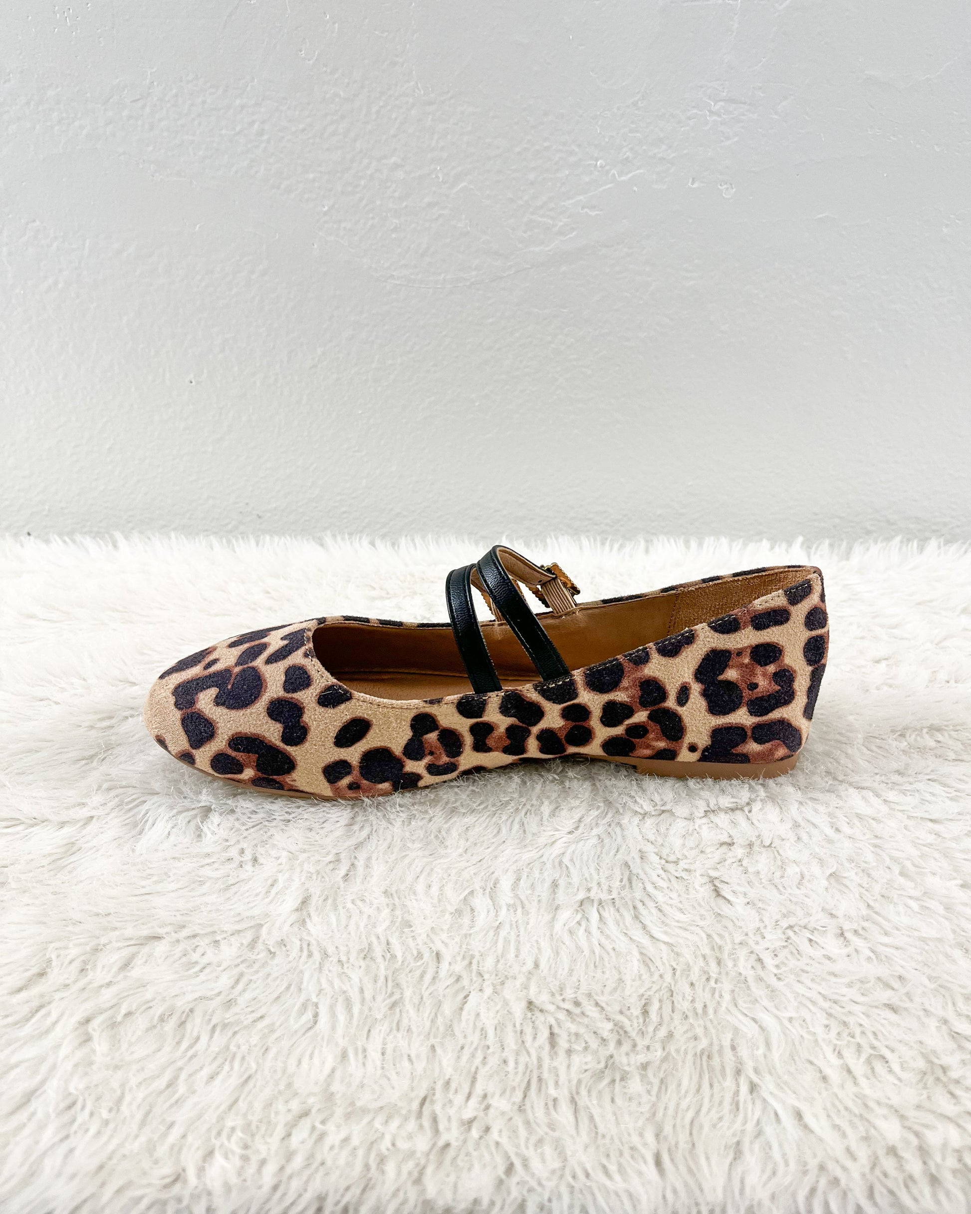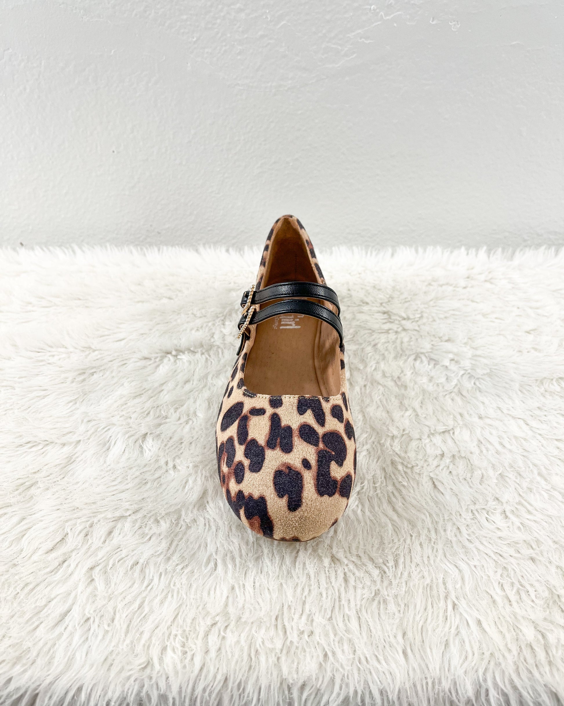 Step into fall with these playful Leopard Ballet Flats from Corkys. Their chic leopard print pairs perfectly with cropped denim, dresses, or skirts, adding a fun yet neutral touch to any outfit. Two black straps adorned with sparkling rhinestone buckles bring a dash of sparkle and charm to your step. Comfortable and stylish, these flats are your go-to for effortless autumn flair.