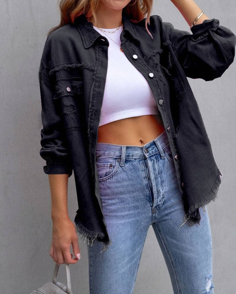 Add a splash of edge to your outfit with this Distressed Long-Sleeved Denim Jacket. Available in bold black and vibrant Kelly Green, it’s the perfect layering piece to mix and match with your favorite looks. Whether you’re dressing up or down, this jacket brings a playful twist to your wardrobe essentials.
