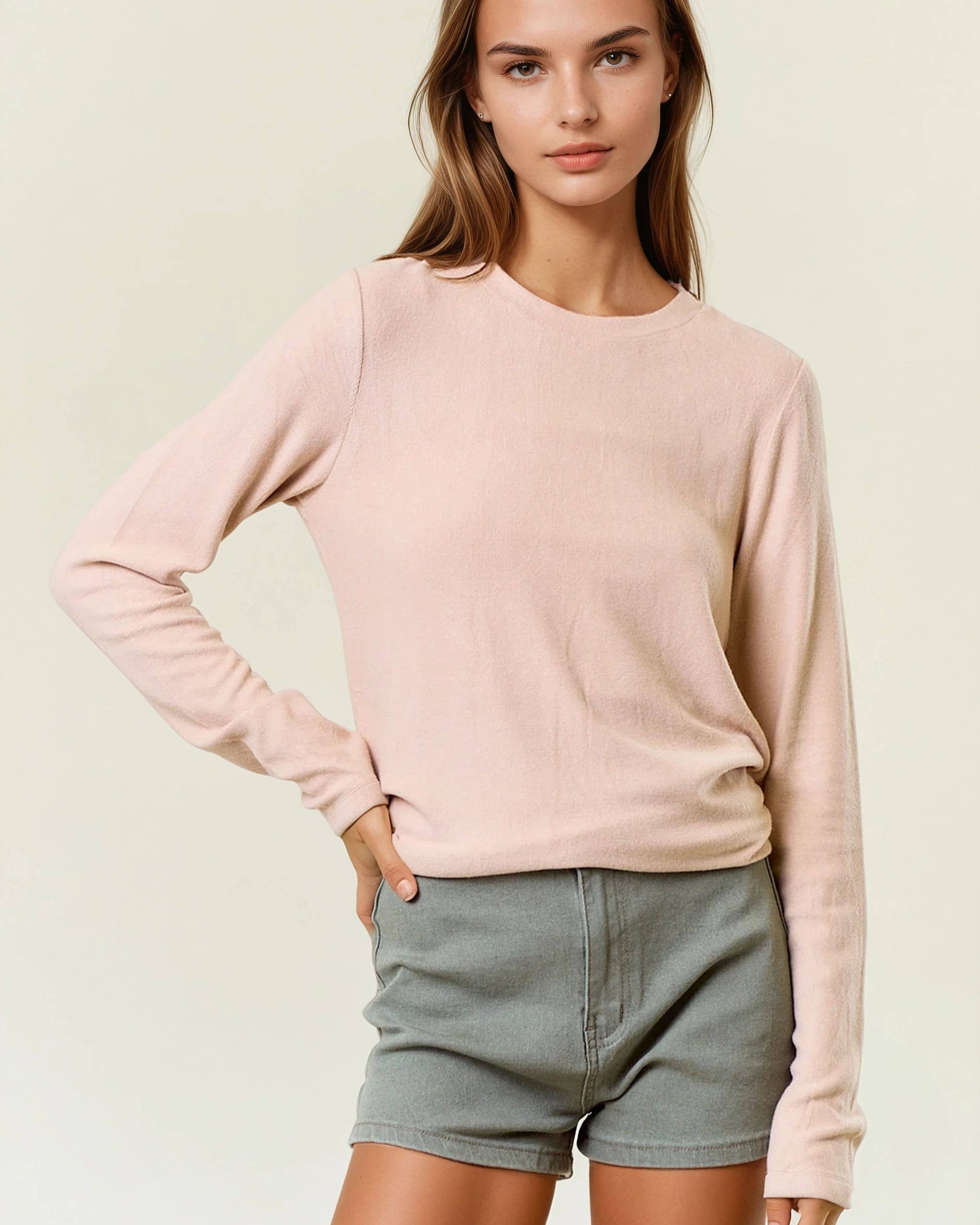 Round Neck Long Sleeve Soft Knit Top
