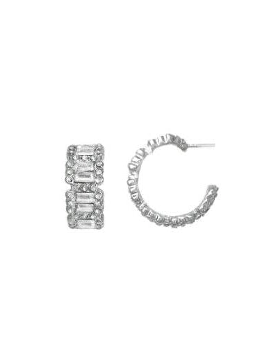 Silver Baguette Rhinestone Hoop Earring