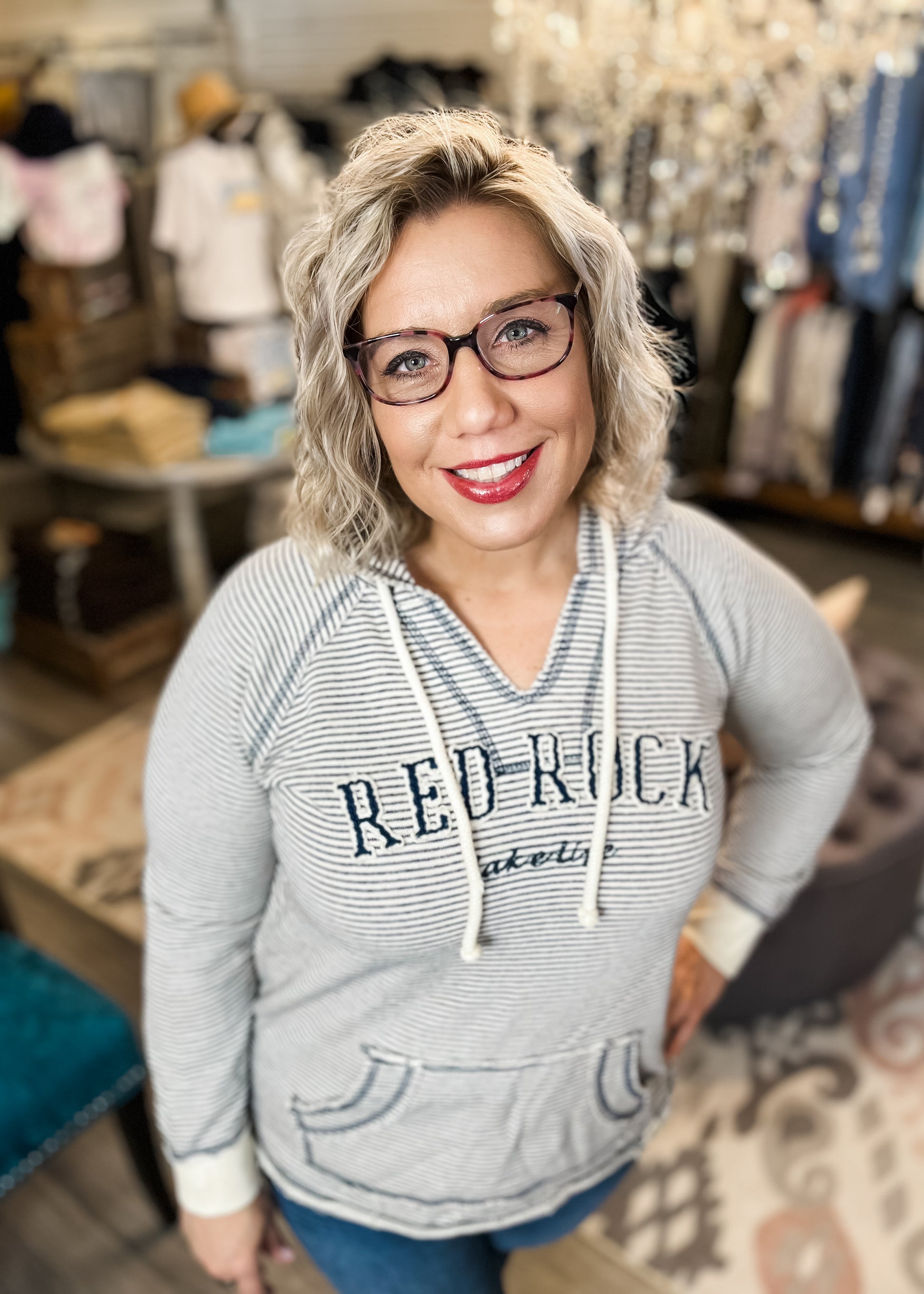 Striped Navy Red Rock Hoodie S-2X