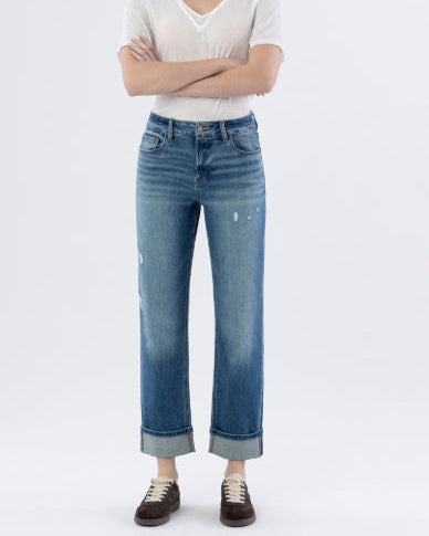 Step out in style with the VERVET "Sleek" High Rise Straight jeans featuring a trendy cuff. These jeans offer a flattering high-rise fit that elongates your legs while the straight cut keeps things effortlessly cool. The cuff adds a playful twist, perfect for showing off your favorite sneakers or boots. Comfortable and chic, they’re your new go-to for casual days with a touch of flair.
