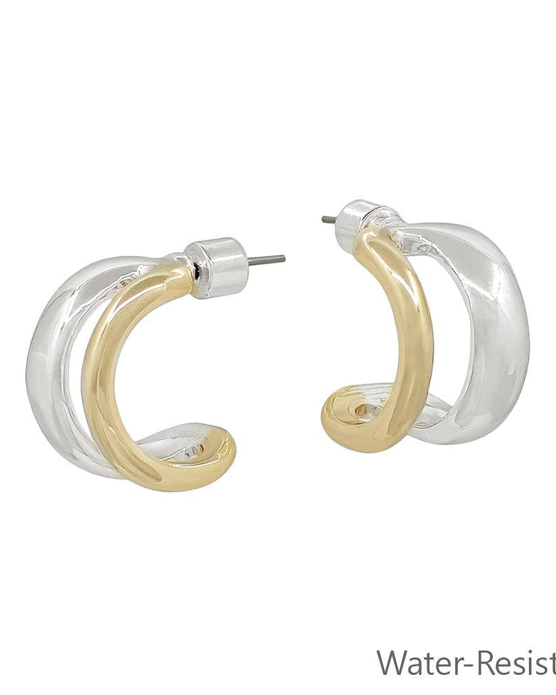 Gold and Silver Open Double Layered Huggie Hoop Earring
