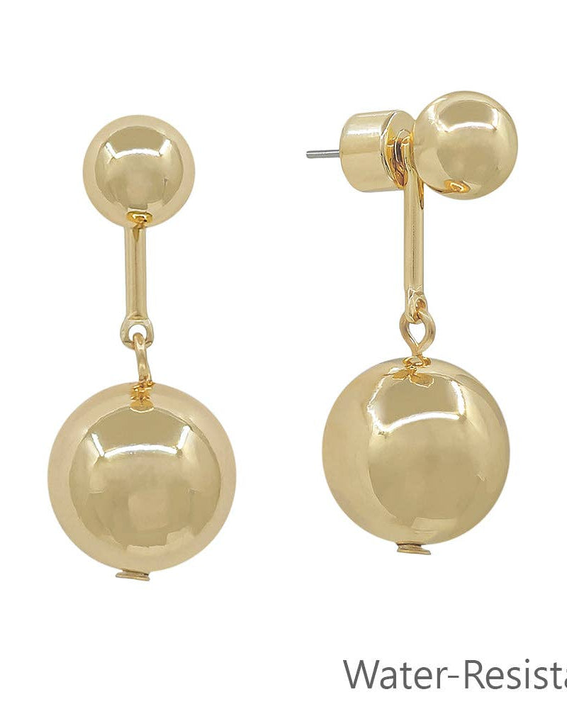 Water Resistant Gold Bar with Gold Ball Drop Earring